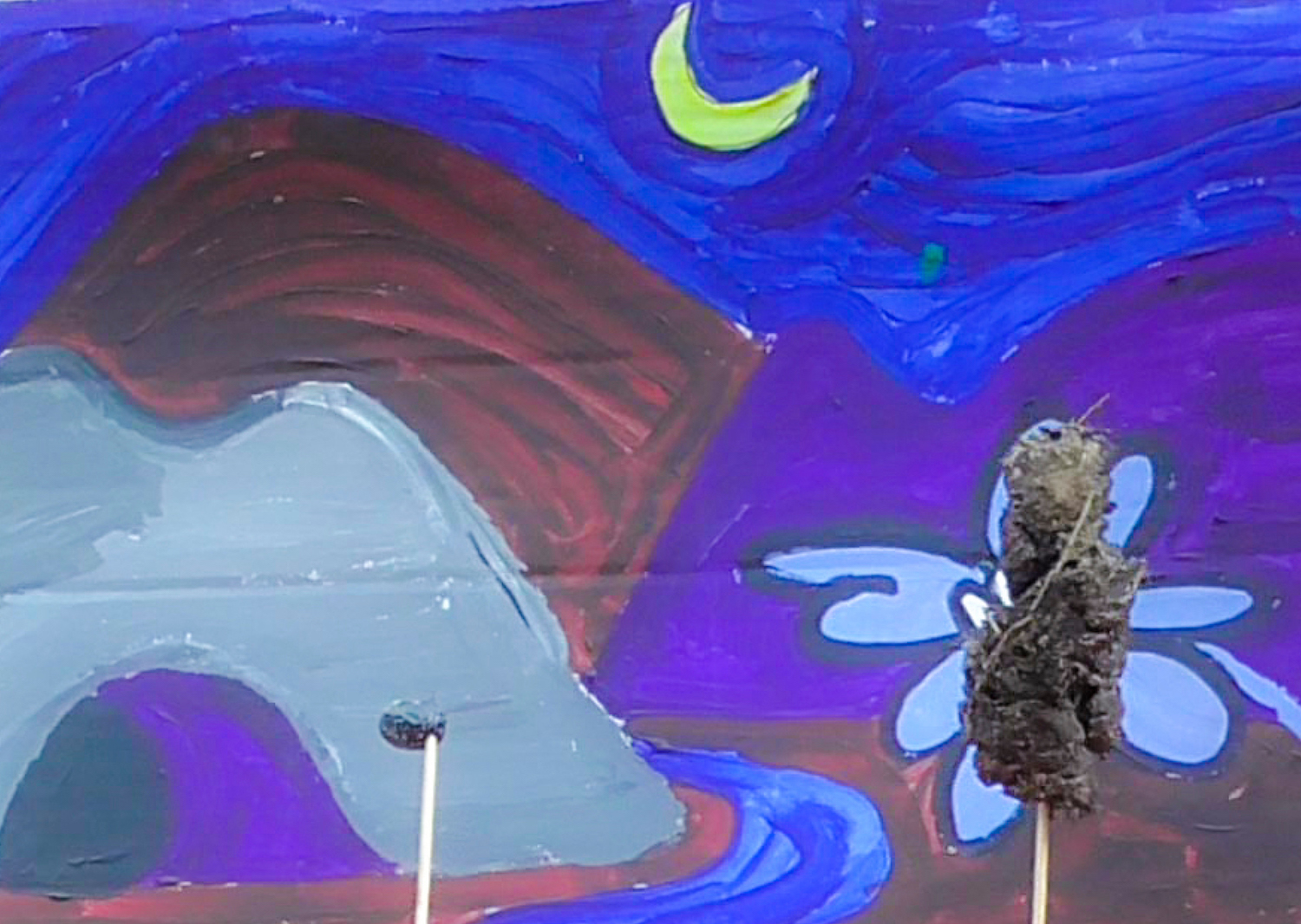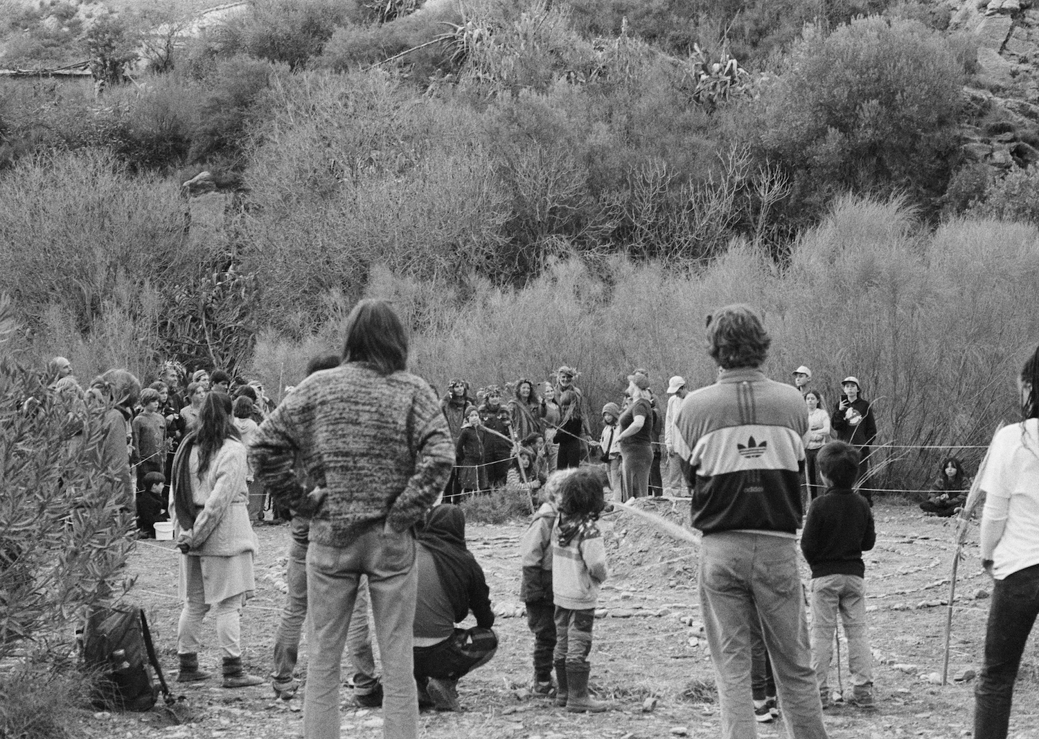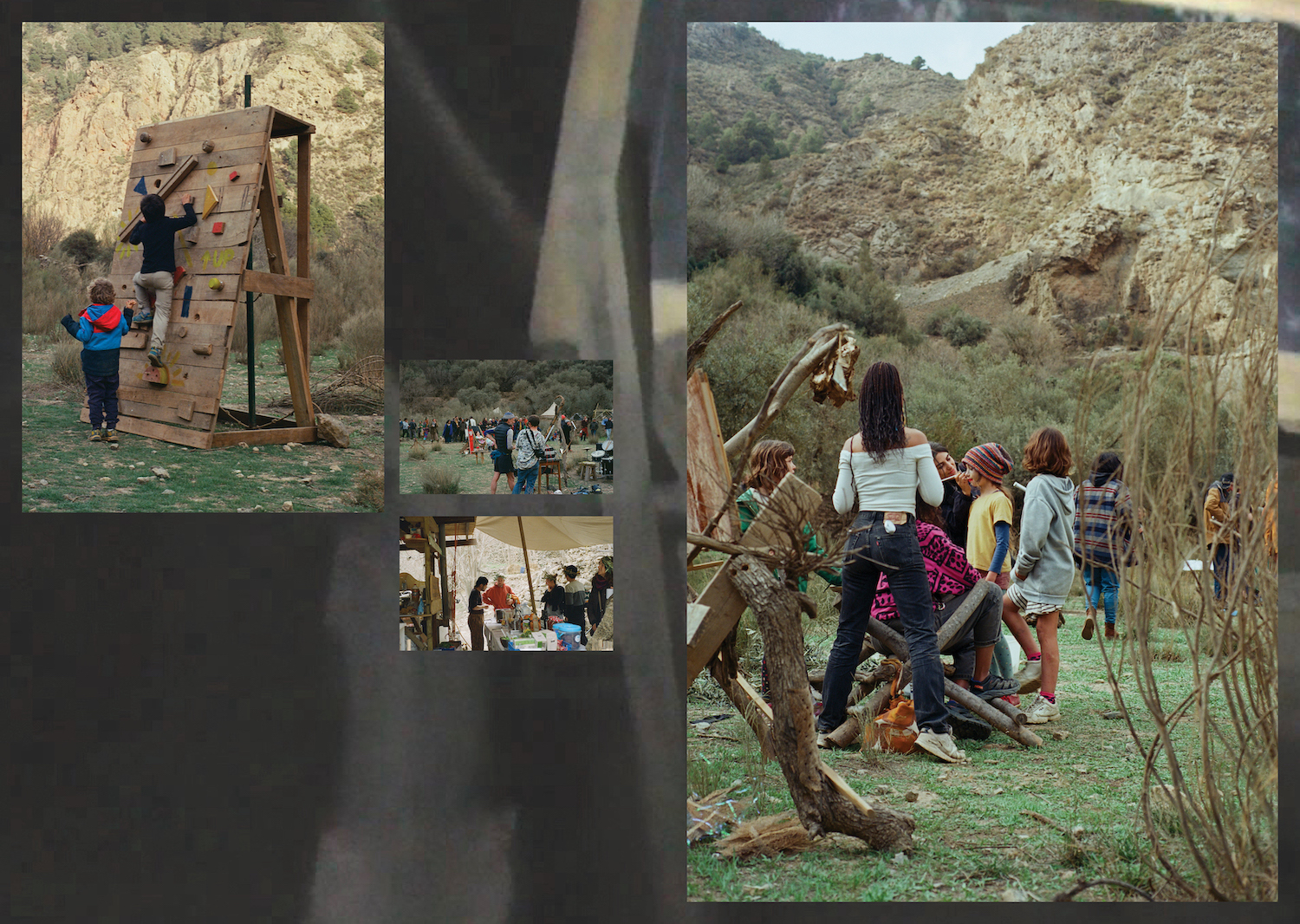 Dirty x Banana happened in February 2022 during one to six weeks. Near the river exploring rocks, collective possibilities and boundaries through community gathering, sudden season changes, workshops, cooking, theme nights, costume creation and a lot of caring/sharing. Between building our surrounding furnitures and utilities known as the best dry toilet with panorama view, hot shower in a spiral of cane, tents on slopes, kitchen where Mari would not sit but we hope applause. Rope, paths and a dome from the waterfall neighbors and games; we warmly want to welcome you to the crisálida of our journey.